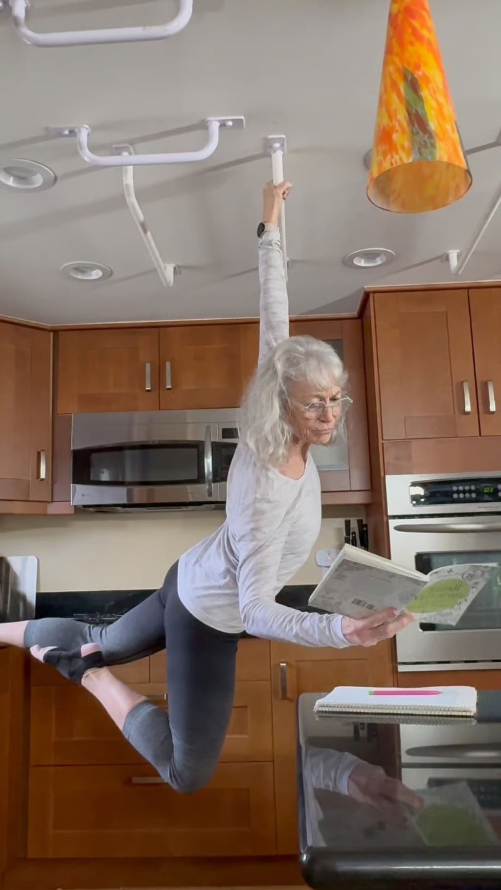 Erst mit 63 Jahren begann Ginny ernsthaft mit Krafttraining. Ein weiterer Auslöser dafür? In ihren 60ern wurde bei ihr Osteopenie diagnostiziert – eine Vorstufe von Osteoporose. Auf Anraten ihres Arztes begann sie mit dem Training, obwohl sie zuvor nie in einem Fitnessstudio gewesen war. “Ich erinnere mich gern an die ganzen kreativen Dinge, die wir (sie mit Tochter Jessie; Anm.) gemacht haben – zum Beispiel mit einem Vorschlaghammer auf einen Reifen einschlagen – das war auch ein guter Aggressionsabbau.” Zwei Jahre später schaffte sie ihren ersten Klimmzug (“Jetzt schaffe ich siebzehn”) – ein Meilenstein, der sie weiter motivierte. Mittlerweile hat sie ihr Haus in ein Fitnessstudio umgewandelt: Von den Metallverstrebungen an der Küchendecke hängt sie einarmig ab, um mit der anderen Hand ihr Lunch zu kochen. In den meisten Türdurchgängen sind Klimmzugstangen montiert.